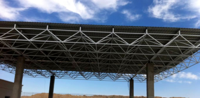 5、網(wǎng)架總拼和屋面板安裝完成后,均應(yīng)測量其撓度值,所測撓度值不大于設(shè)計值的115% 。